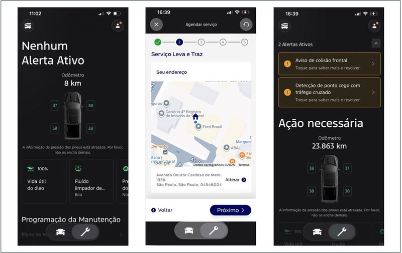 A seção de serviços foi completamente redesenhada e o agendamento do Serviço Leva e Traz e do Serviço Móvel agora é feito com distâncias calculadas pelo Google Maps, melhorando a precisão e experiência. O aplicativo ganhou também um assistente inteligente para a manutenção do veículo. Quando tudo está em ordem, a tela principal exibe: “Nenhum Alerta Ativo”. Se o veículo requer algum tipo de atenção, a informação é destacada na parte superior, trazendo orientações para a solução do problema ou agendamento de revisão.