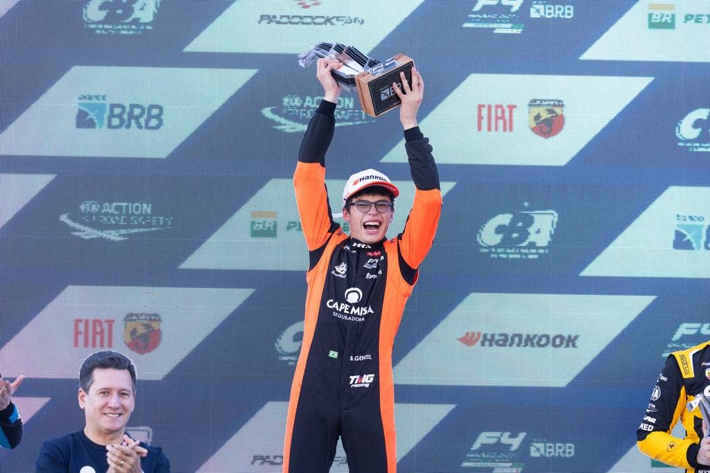 A BRB Fórmula 4 Brasil encerrou a etapa de abertura da temporada 2026 neste domingo (26), em Interlagos, com uma corrida movimentada e marcada por grandes atuações. O destaque ficou para Bernardo Gentil (TMG Racing), de apenas 16 anos, que conquistou sua primeira vitória na categoria logo em seu ano de estreia, liderando de ponta a ponta.