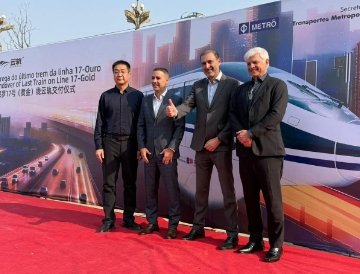 A Linha 17-Ouro do Metrô de São Paulo atingiu um marco decisivo para sua inauguração. Em cerimônia realizada em Guang’An, na China, a BYD entregou a 14ª e última composição do SkyRail destinada à frota paulistana, que marca a implementação do primeiro sistema de monotrilho da fabricante fora da sua matriz. O evento reuniu autoridades e lideranças envolvidas no empreendimento, com a participação virtual do governador do Estado, Tarcísio de Freitas, e as presenças de Julio Castiglioni e Roberto Torres, presidente e diretor de Engenharia do Metrô de São Paulo, além de Alexandre Barbosa, diretor Técnico da BYD SkyRail no Brasil, entre outros executivos da fabricante.