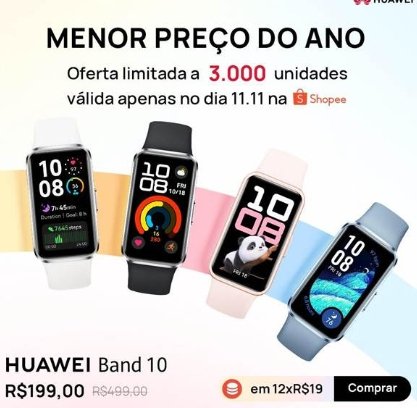 HUAWEI Band 10 – de R$ 499,00 (preço cheio) por R$ 199,00