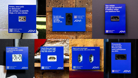 No total, mais de 50 tomadas foram customizadas em endereços estratégicos da noite paulistana — incluindo C do Padre, Baixo Pinheiros e Santa Augusta —, com o objetivo de provocar quem está sempre à caça de um ponto de energia. A ação conta com placas que trazem frases como “Se você veio até essa tomada, é porque seu celular não é um Y29s 5G” e “Procurando por tomada? Procure pelo novo smartphone da JOVI”.