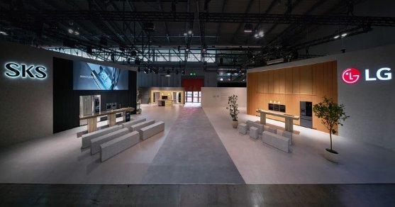 O espaço de exposição da LG, com mais que o dobro do tamanho de sua área em 2024, foi desenvolvido em colaboração com a dupla de designers ítalo-dinamarquesa GamFratesi. Baseado em um conceito modular que reflete os ambientes e estilos de vida das cozinhas europeias, o espaço apresenta o portfólio de embutidos da LG para o mercado europeu: a linha SKS para o segmento ultrapremium e o pacote LG Built-in para o segmento mass premium.