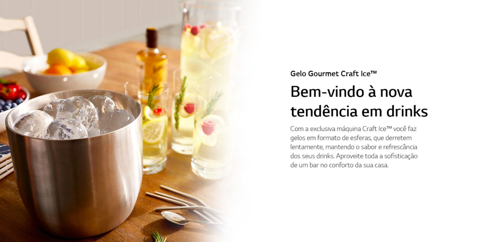 Para os anfitriões que amam surpreender com coquetéis e bebidas especiais, o destaque é a Geladeira LG Side by Side InstaView™ com Craft Ice™ (modelo GC-X257CSH). A tecnologia exclusiva produz esferas de gelo de 5 cm de diâmetro que derretem mais lentamente, mantendo o sabor original das bebidas por mais tempo e adicionando um toque de requinte a qualquer drink. Além do Craft Ice™, o modelo conta ainda com fábrica de gelo em cubos e triturado, sem esquecer o painel InstaView™, que permite ver o interior com dois toques no vidro, e a tecnologia UVnano™, instalado no dispenser de água para garantir máxima pureza.