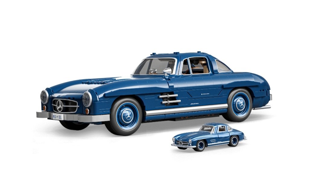Reinterpretação do lendário “Gullwing”, com portas asa de gaivota, emblema metálico da Mercedes-Benz e interior detalhado. Contém mais de 1.600 peças.