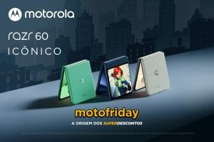 A Moto Friday chega com condições ampliadas: até 18 vezes sem juros nas famílias edge e razr, frete grátis, ofertas que chegam a 55% no PIX e reduções de até R$ 2.799 no motorola razr 60 ultra ou R$ 700 no moto g86 + moto buds, e no edge 60, também no pagamento via PIX. A seleção inclui modelos das famílias edge 60, razr 60 e moto g, além dos acessórios moto things.