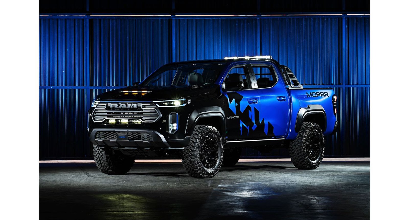Para inspirar os fãs da picape, a Mopar apresentou também uma novidade: a Ram Dakota Blue Shadow. O novo show truck, apresentado durante o lançamento do modelo, em breve estará exposto em feiras, eventos e concessionárias Ram em todo o Brasil. Baseado na versão Warlock, adesivada na exclusiva cor Azul Mopar, teve em sua inspiração criativa o design robusto do conceito Nightfall que antecipou, em agosto do ano passado, as linhas da nova Ram Dakota.