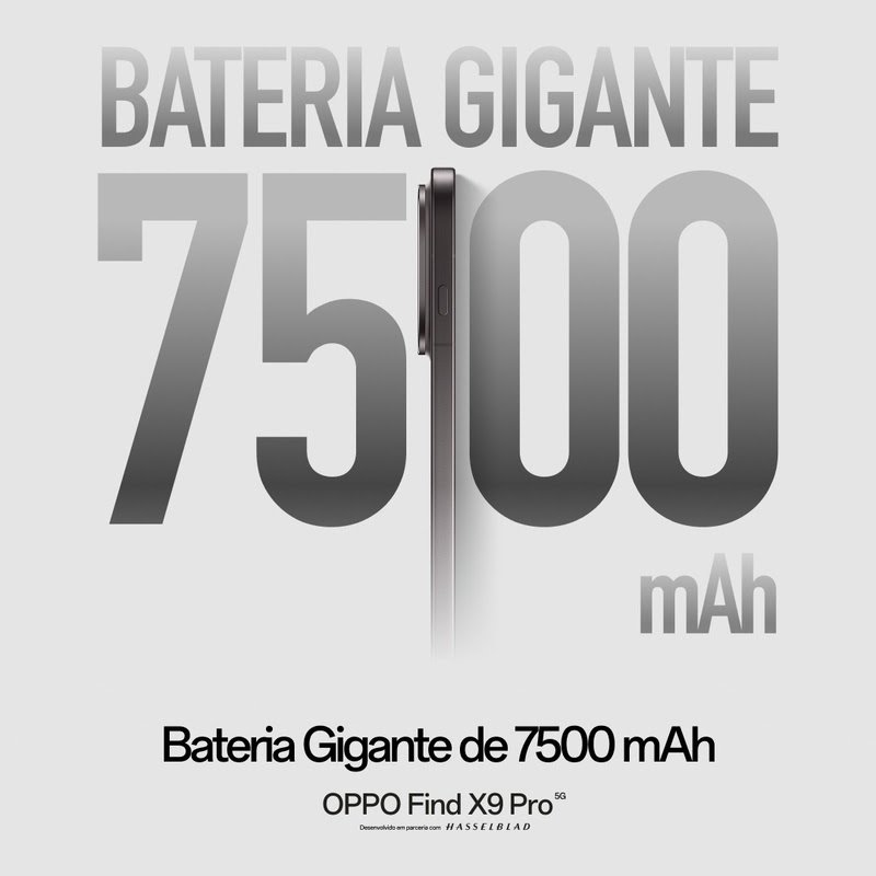 Com mais de 750 milhões de usuários em todo o mundo, a OPPO estreia oficialmente no segmento premium brasileiro com o lançamento do OPPO Find X9 Pro, seu primeiro flagship no País. Além de seu design sofisticado e conjunto de câmeras, que conta com uma teleobjetiva de 200 megapixels certificada pela Hasselblad, o aparelho chama a atenção por sua enorme bateria de 7.500 mAh, garantindo autonomia para tarefas intensas sem comprometer a experiência.
