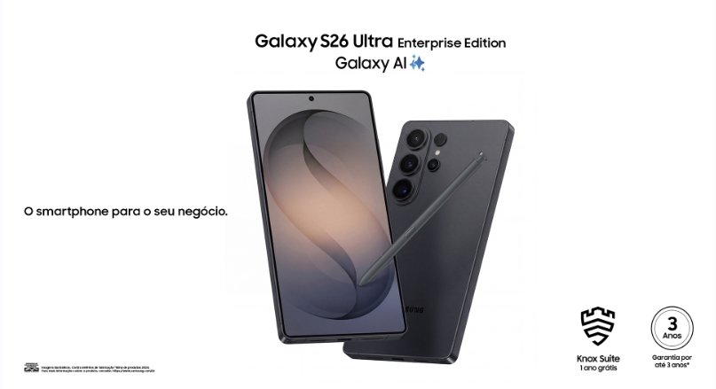Os Galaxy S26 e S26 Ultra Enterprise Edition estão disponível através do Portal Samsung Empresas, além de canais parceiros e B2B de operadoras..