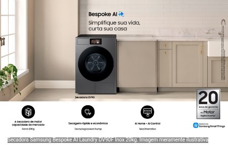 A Samsung Brasil anuncia o lançamento de sua nova secadora de roupas, a Heat Pump Samsung Bespoke AI Laundry DV90F Inox 20kg 220V. A novidade tem a maior capacidade de secagem do mercado1 e comporta muito mais roupas em uma única carga, incluindo itens grandes como edredons king size.
