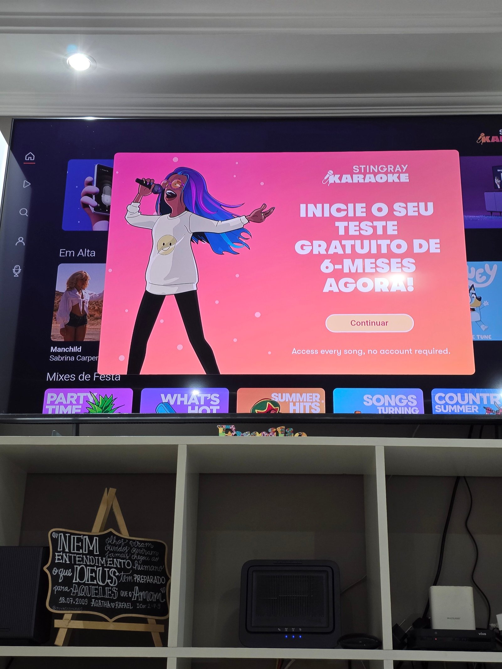 Coisas bem legais ainda do modelo é que ela possui suporte a Bixby da Samsung e Amazon Alexa, tem um modo ambiente que permite transformar a TV em uma peça de decoração ou um quadro quando não está em uso e a função karaoque que não precisa de microfone, você usa seu smartphone para cantar.