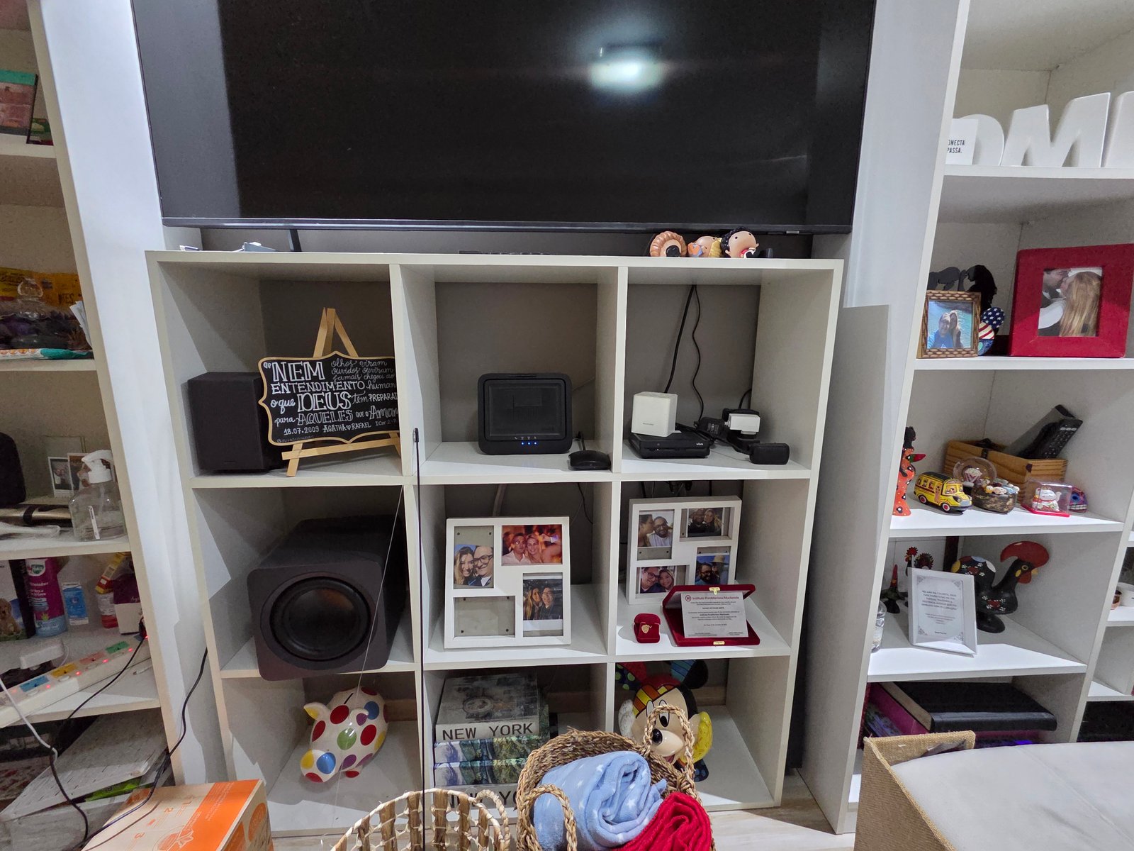A equalização padrão é ótima, mas você pode ajustar no equalizador ou escolher modos prontos, como Modo Noturno (subwoofer desligado), SpaceFit Sound Pro (calibração automática do ambiente), Game Pro (melhor áudio para jogos), Amplificador de Voz