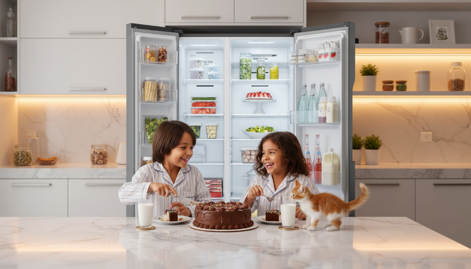 Mais do que nunca, a cozinha se consolida como o epicentro do entretenimento doméstico. É onde as bebidas geladas são preparadas e os lanches para a tarde toda são armazenados. O problema? A cada porta aberta, o ar frio escapa, forçando o motor a trabalhar mais e impactando tanto a conservação dos alimentos quanto a conta de energia. Para resolver essa questão, a LG equipou seus refrigeradores com a tecnologia DoorCooling+™, uma saída de ar superior que cria uma cascata de ar frio, resfriando o interior de forma muito mais rápida e uniforme. Assim, mesmo com o movimento intenso das crianças, a temperatura ideal é mantida, garantindo que frutas, iogurtes e sucos estejam sempre frescos e prontos para o consumo.